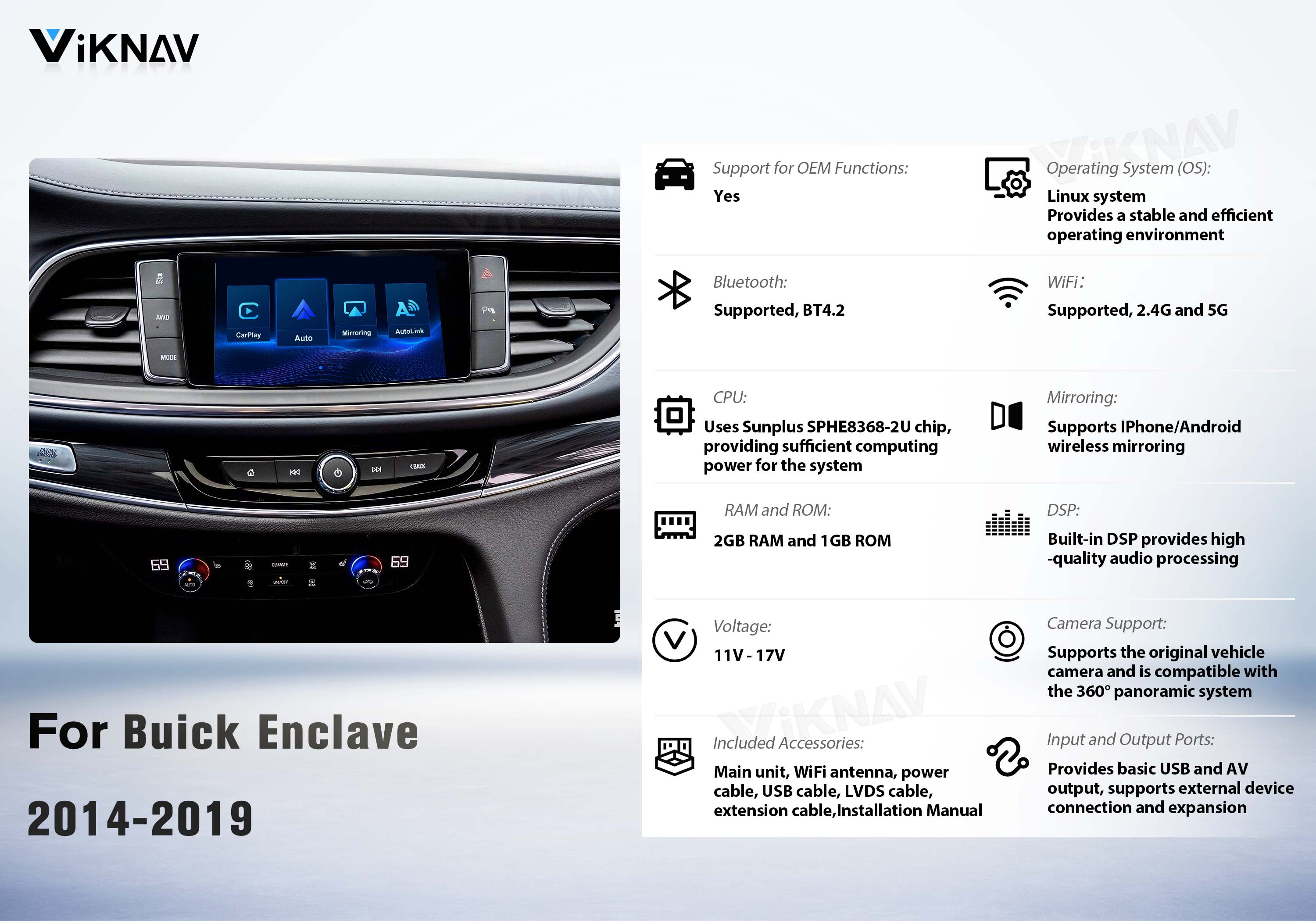 🥑Supports OEM Cameras: The system automatically activates and is fully compatible with your Enclave's original rearview and 360° panoramic cameras when you shift into reverse.