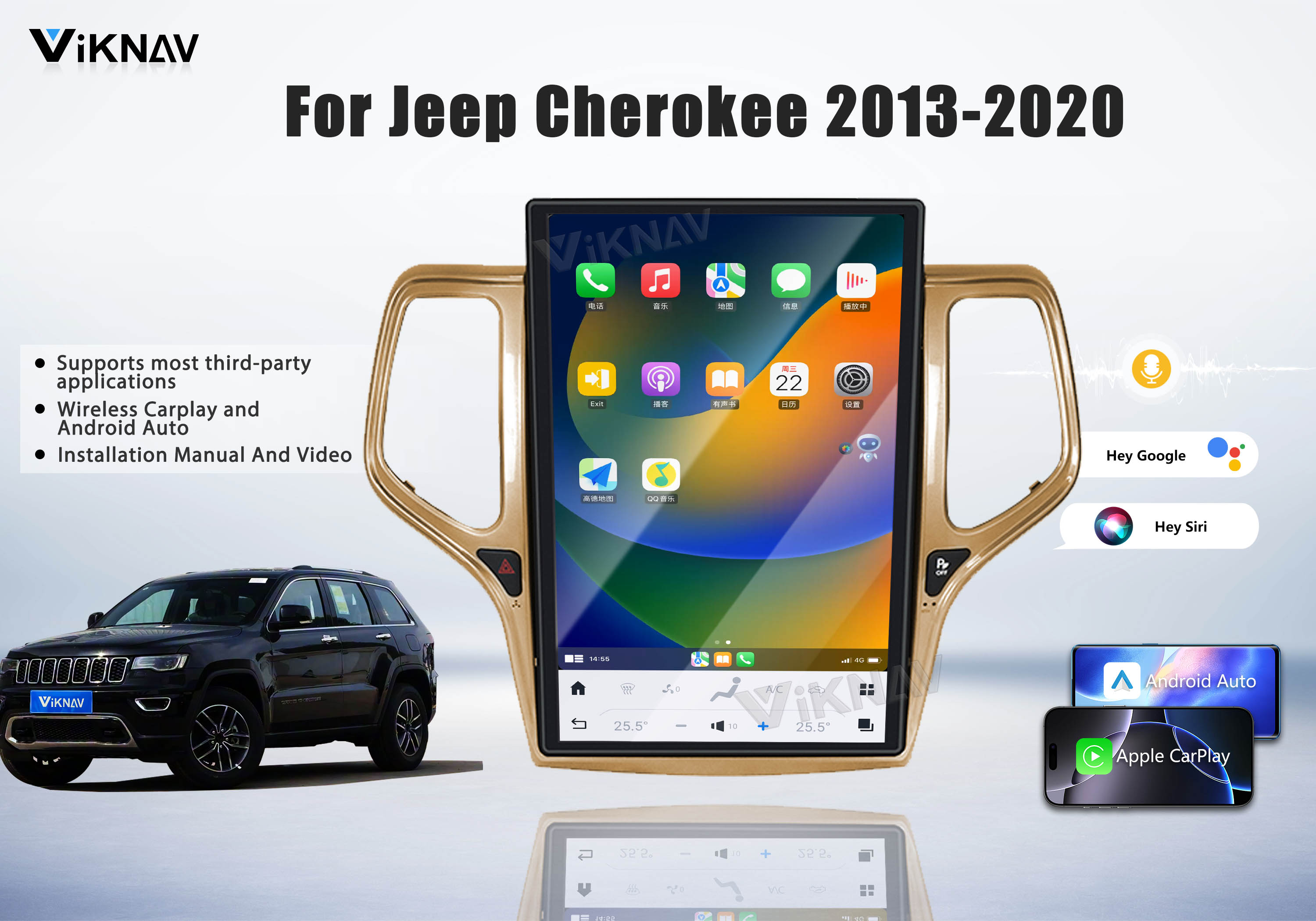 ViKNAV14.4 Inch Android Car Radio For JEEP Cherokee 2013-2020 CarPlay Touch Screen GPS Navigation Stereo Head Unit With Champagne Gold
